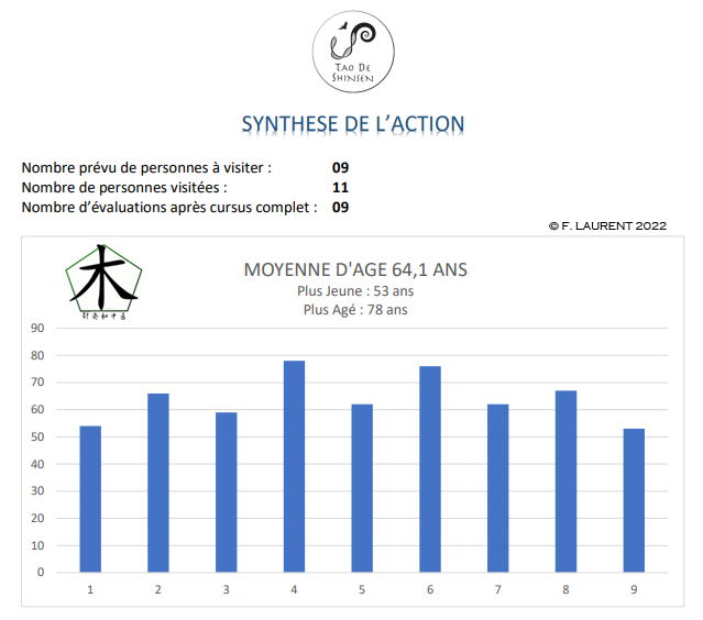 Nature de l’action : 8 séances proposées lors de visites de courtoisie auprès d’un public Senior à domicile ou en structure, en quartier prioritaire ou ne pouvant plus se déplacer. Discussions, échanges et activités sur les thèmes de la respiration, des mouvements doux de routine traditionnelle Orientale et Chinoise, de la relaxation. (L’action est terminée au 9 décembre 2022)