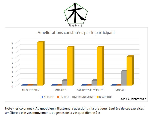 91% des participants ayant pratiqué régulièrement ces exercices simples ont dit ressentir des améliorations sur l’équilibre pendant la marche ou la station debout, amélioration de la fluidité et l’amplitude de leurs mouvements, une diminution des douleurs articulaires et une amélioration du moral pendant et après la pratique.